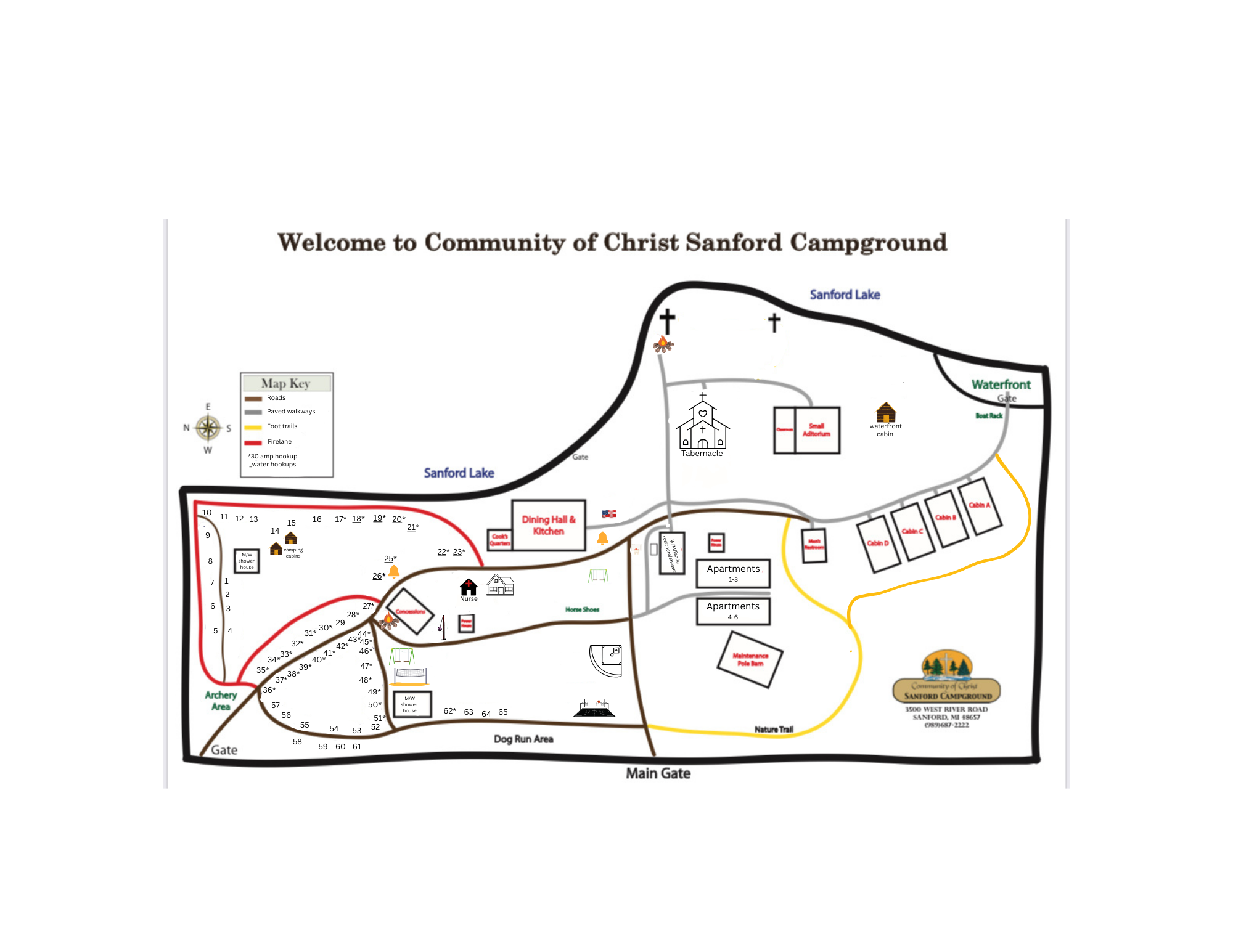Sanford Campground aims to provide places for camping experiences that include fellowship, worship, recreation, and personal development. Our facilities prohibit the use of alcohol, tobacco, marijuana, drugs, weapons, and fireworks.