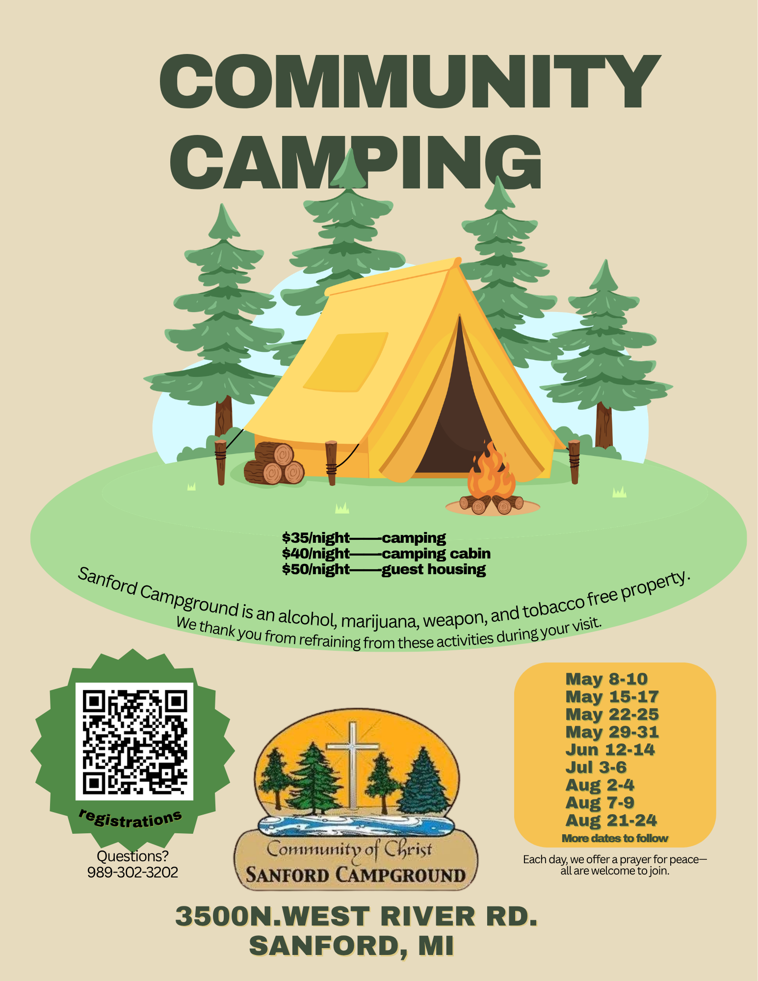 Sanford Campground aims to provide places for camping experiences that include fellowship, worship, recreation, and personal development. Our facilities prohibit the use of alcohol, tobacco, marijuana, drugs, weapons, and fireworks. […]